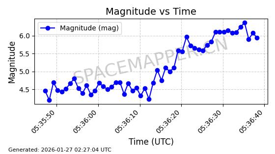 | FENGYUN 4B | 48808 | 48808 | 2021-06-02 同日期轨道 2021-047A 同批次轨道 | 在轨 | 1436分钟 | 0.0992 | 35747.269 | 35828.997 | 0.0009691 | 2026-01-27 00:27:52 | ||