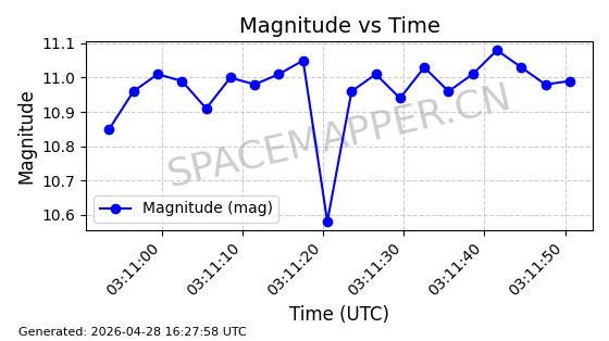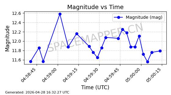 | GALAXY 31 | 54243 | 54243 | 2022-11-12 同日期轨道 2022-153A 同批次轨道 | 在轨 | 1436分钟 | 0.0125 | 35780.127 | 35792.103 | 0.0001420 | 2026-04-28 06:03:40 | ![]() | |