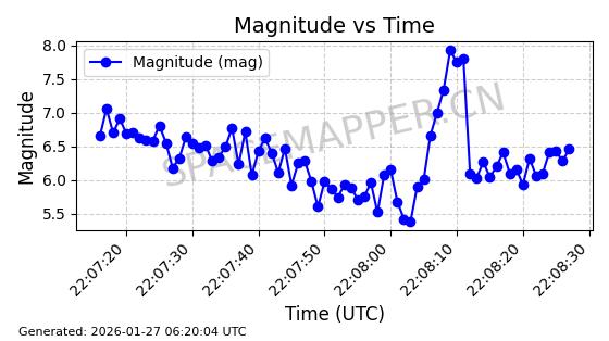 | GEESAT 6-01 | 65713 | 65713 | 2025-09-24 同日期轨道 2025-214B 同批次轨道 | 在轨 | 97分钟 | 49.9838 | 611.382 | 628.958 | 0.0012557 | 2026-01-27 00:56:42 | ![]() | |