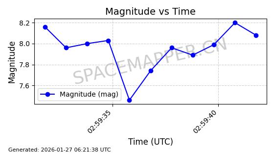 | GEESAT 4-09 | 65127 | 65127 | 2025-08-08 同日期轨道 2025-170J 同批次轨道 | 在轨 | 98分钟 | 49.9941 | 663.693 | 692.515 | 0.0020423 | 2026-01-27 06:53:27 | ![]() | |