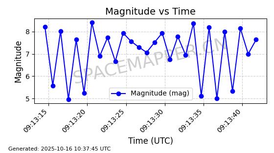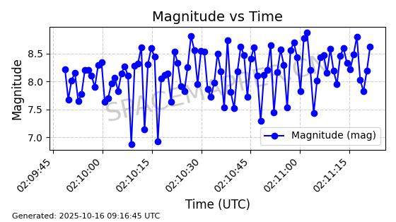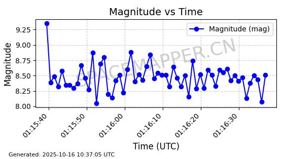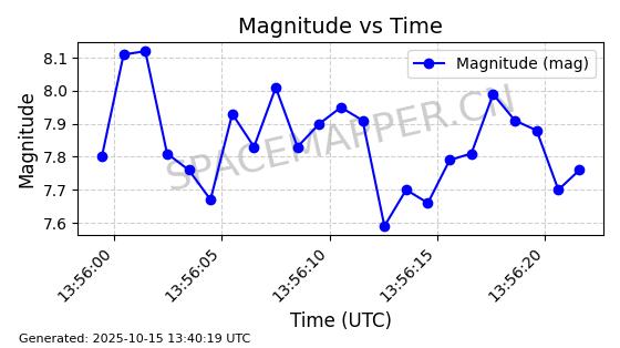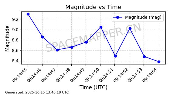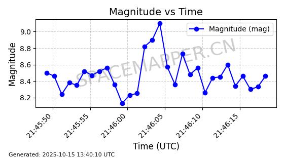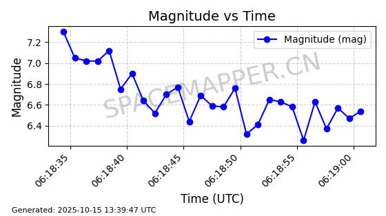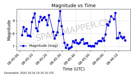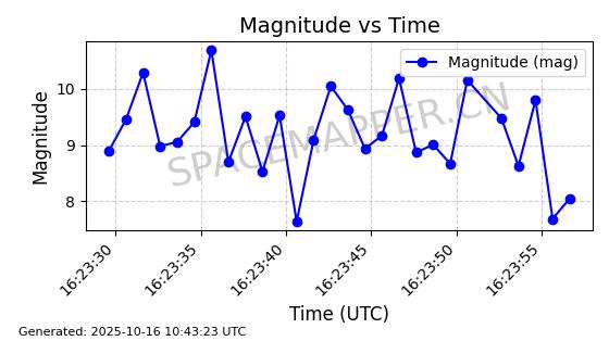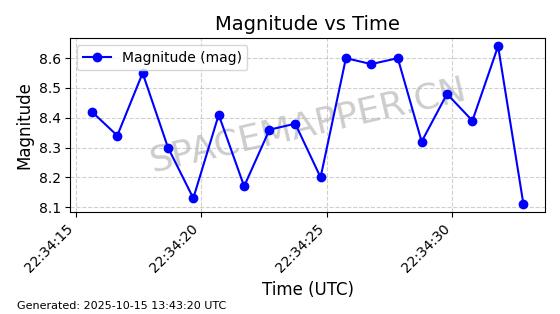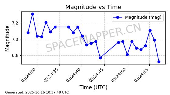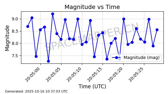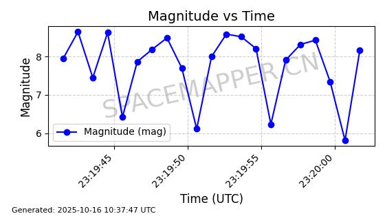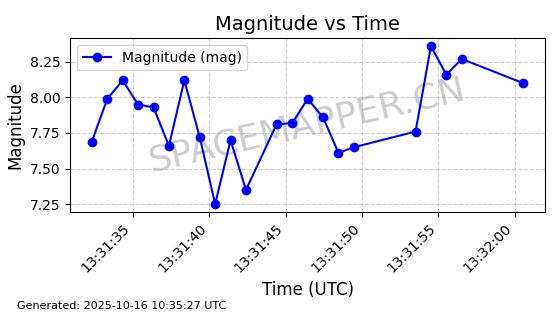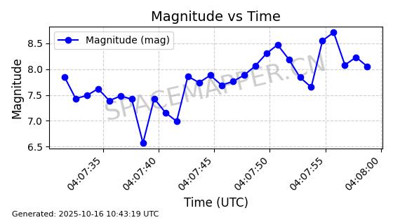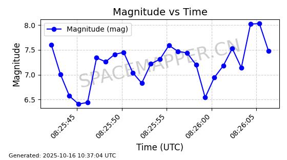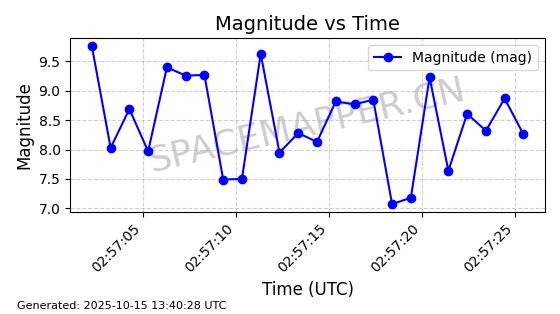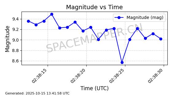 GLOBALSTAR M030 | 25854 | 25854 | 1999-07-10 同日期轨道 1999-037D 同批次轨道 | 在轨 | 125分钟 | 51.9870 | 1885.838 | 1890.77 | 0.0002983 | 2025-10-14 20:20:18 | ![]() | |