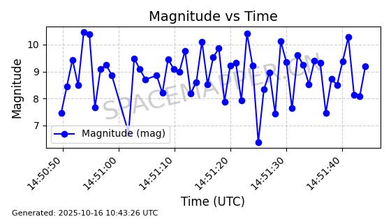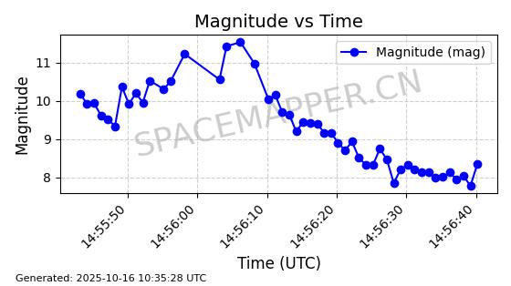GLOBALSTAR M075 | 37192 | 37192 | 2010-10-19 同日期轨道 2010-054E 同批次轨道 | 在轨 | 114分钟 | 51.9934 | 1412.972 | 1414.22 | 0.0000800 | 2025-10-14 23:00:15 | ![]() | |