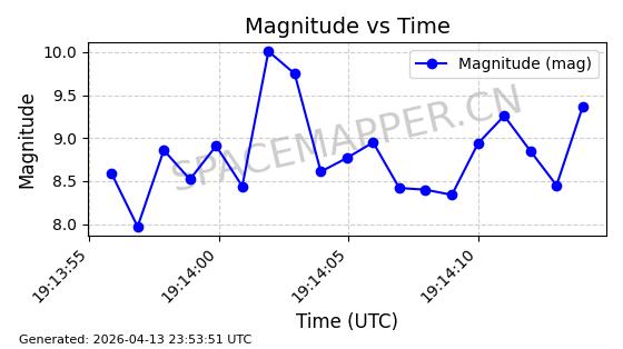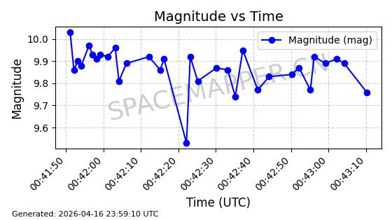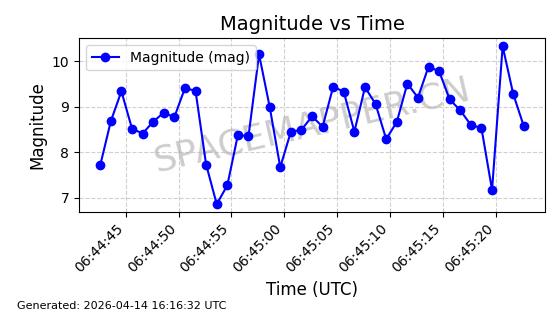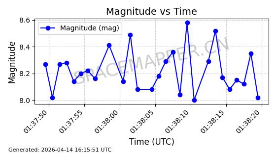 | 在轨 | 119minutes | 51.9845 | 1620.568 | 1634.386 | 0.0008630 | 2026-03-15 20:57:17 |  | |