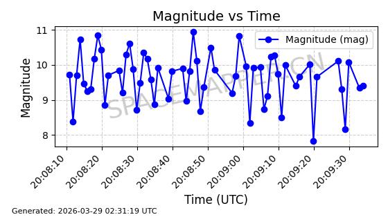 | GLOBALSTAR M029 | 25963 | 25963 | 1999-11-22 同日期轨道 1999-062C 同批次轨道 | 在轨 | 120分钟 | 51.9831 | 1679.26 | 1683.274 | 0.0002490 | 2026-04-02 08:28:05 | ||