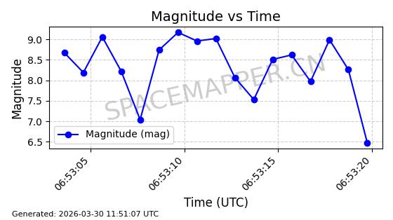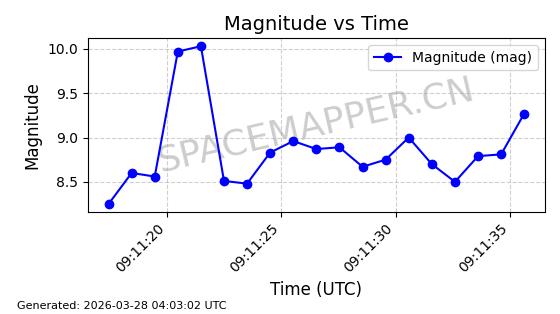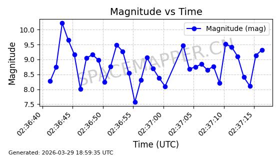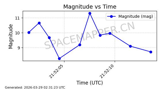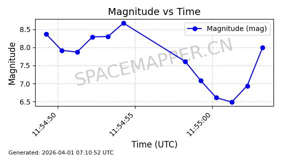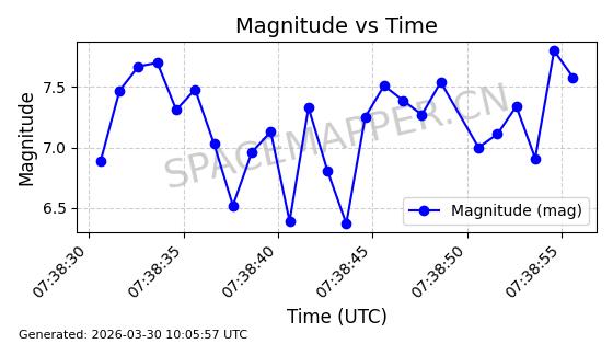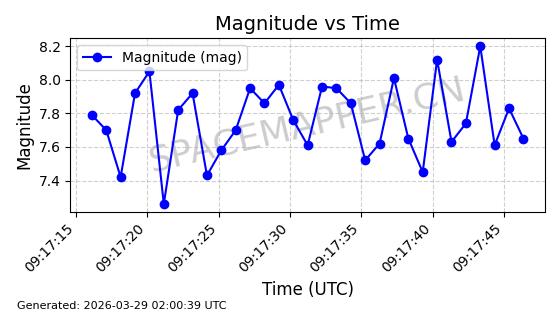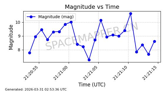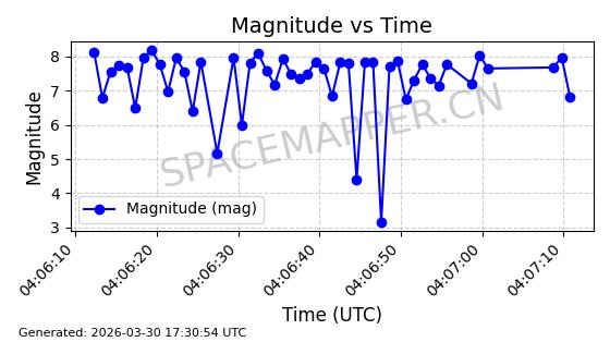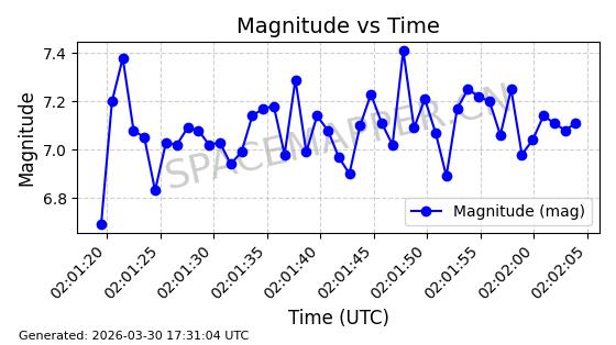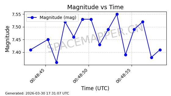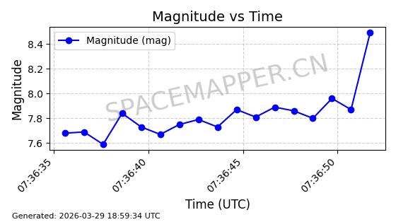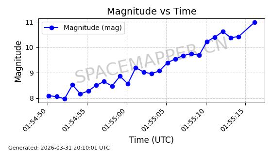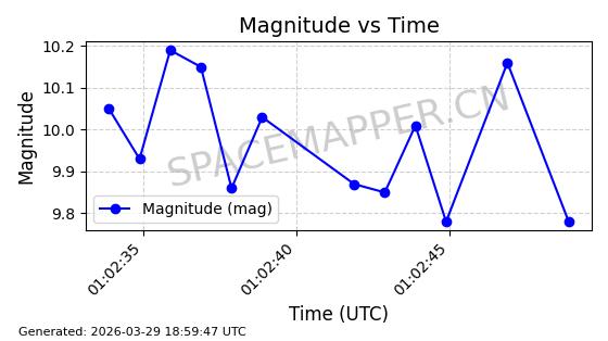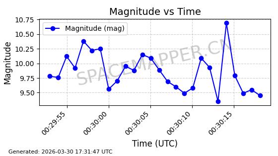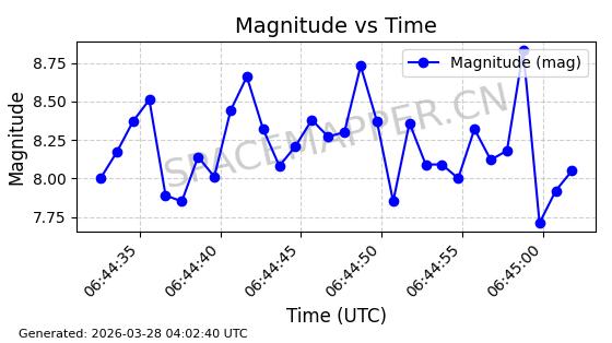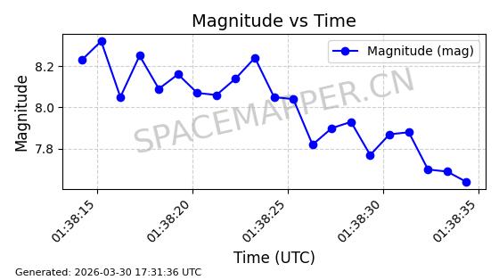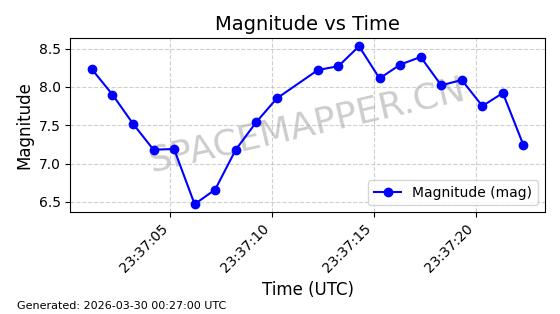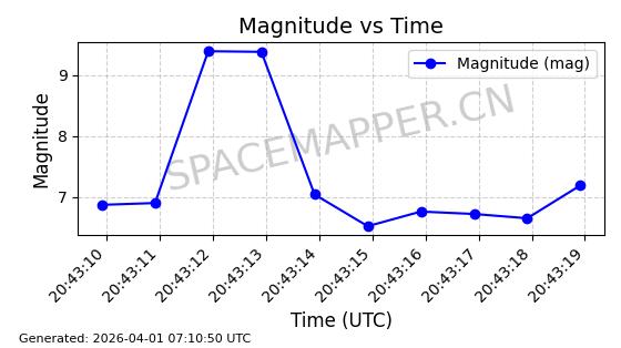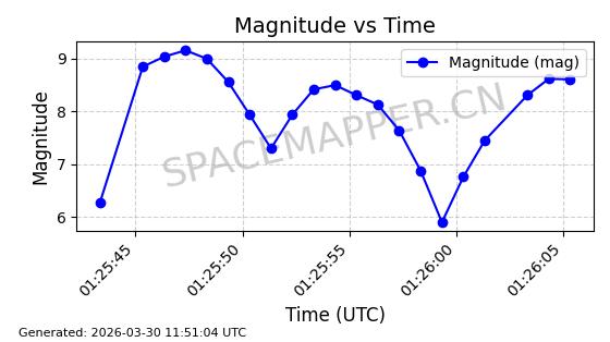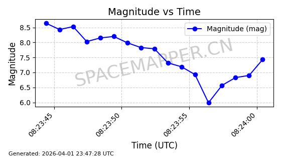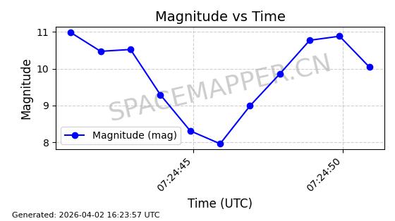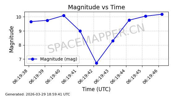 | 卫星名称 | AOE ID | NORAD ID | 发射日期 国际编号 | 在轨状态 | 轨道周期 | 轨道倾角 (度) | 近地点 (Km) | 远地点 (Km) | 偏心率 | 更新时间 (UTC) | 近期光变曲线 | 服务 |