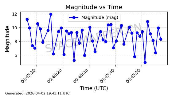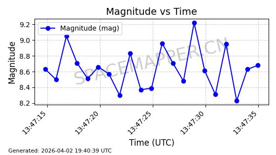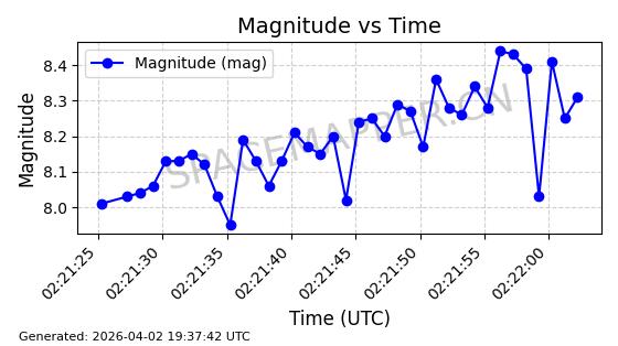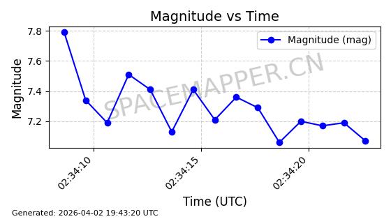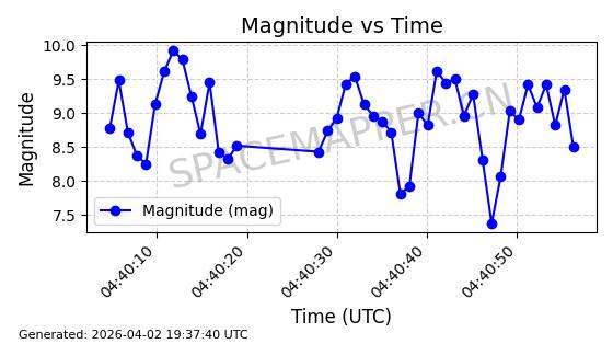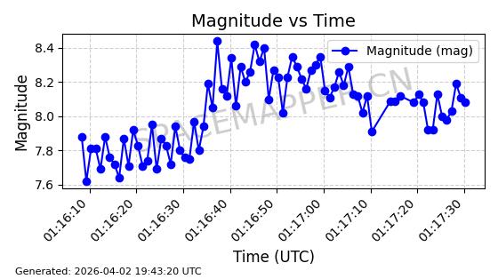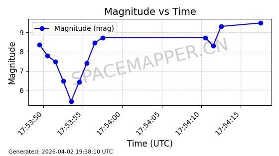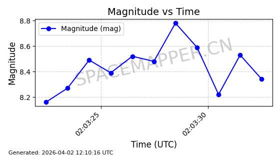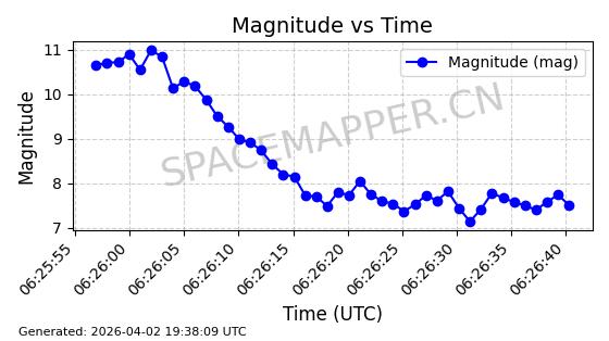 | GLOBALSTAR M076 | 37190 | 37190 | 2010-10-19 同日期轨道 2010-054C 同批次轨道 | 在轨 | 114分钟 | 52.0055 | 1413.262 | 1413.908 | 0.0000414 | 2026-04-02 02:42:20 | ||