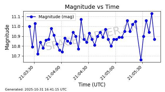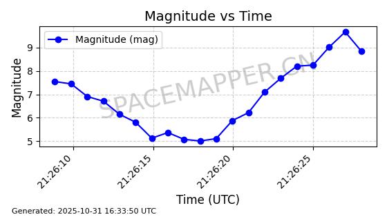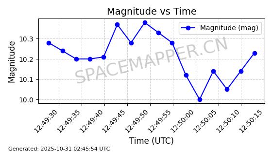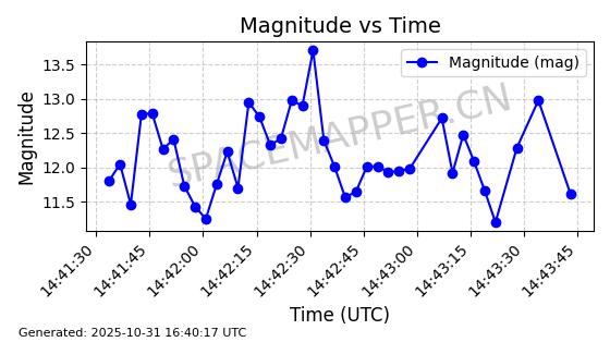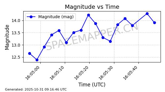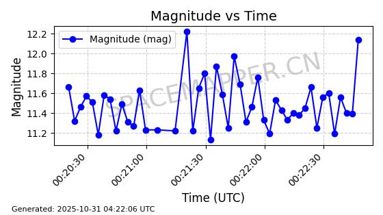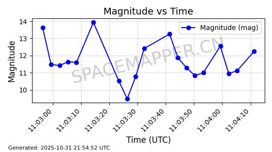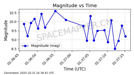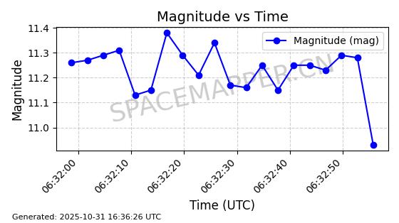 | 卫星名称 | AOE ID | NORAD ID | 发射日期 国际编号 | 在轨状态 | 轨道周期 | 轨道倾角 (度) | 近地点 (Km) | 远地点 (Km) | 偏心率 | 更新时间 (UTC) | 近期光变曲线 | 服务 |