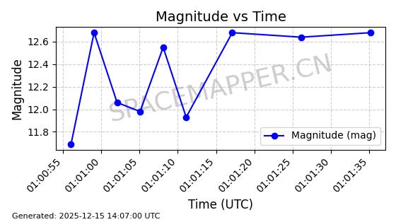 | COSMOS 2382 (GLONASS) | 26987 | 26987 | 2001-12-01 同日期轨道 2001-053A 同批次轨道 | 在轨 | 676分钟 | 63.9599 | 19117.948 | 19141.37 | 0.0004591 | 2025-12-12 16:05:56 | ||