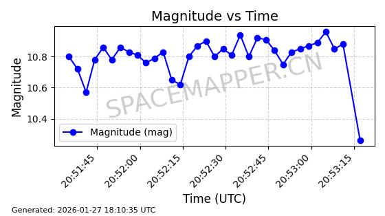 | GOES 16 | 41866 | 41866 | 2016-11-19 同日期轨道 2016-071A 同批次轨道 | 在轨 | 1436分钟 | 0.1311 | 35773.338 | 35800.35 | 0.0003203 | 2026-01-27 05:04:38 | ||