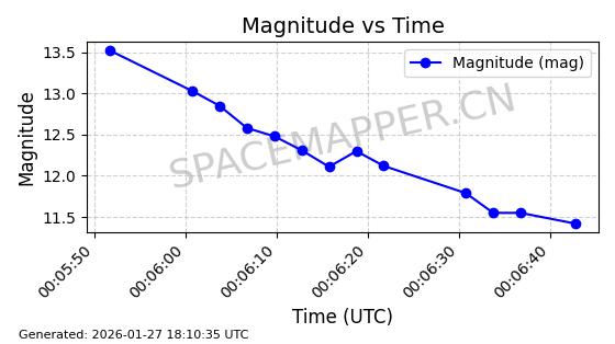 | GOES 11 | 26352 | 26352 | 2000-05-03 同日期轨道 2000-022A 同批次轨道 | 在轨 | 1454分钟 | 11.5028 | 36107.688 | 36163.68 | 0.0006585 | 2026-01-27 02:04:50 | ||