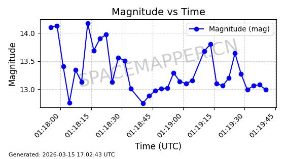 | GOES 16 | 41866 | 41866 | 2016-11-19 同日期轨道 2016-071A 同批次轨道 | 在轨 | 1436分钟 | 0.1254 | 35777.277 | 35795.569 | 0.0002169 | 2026-03-15 06:15:40 | ||