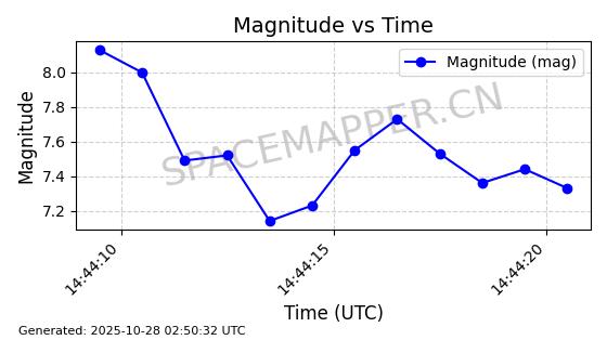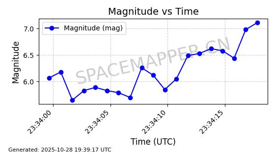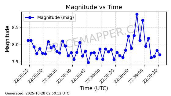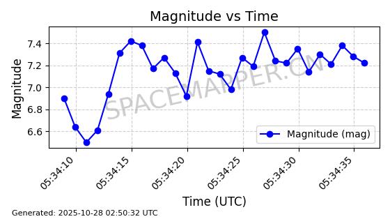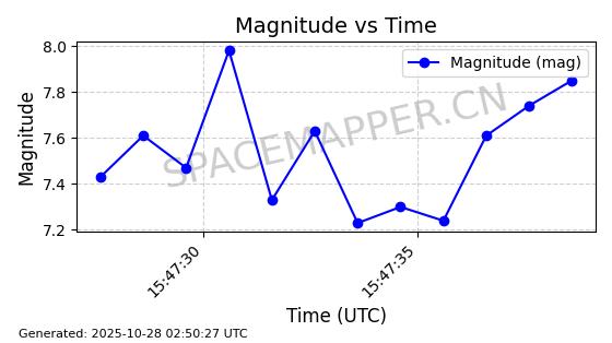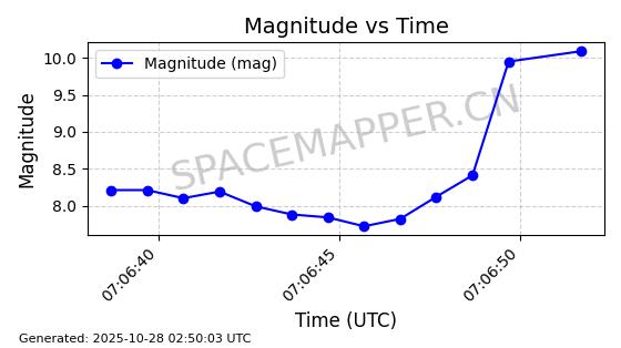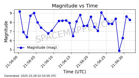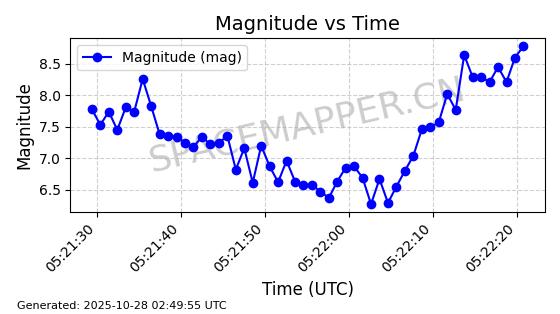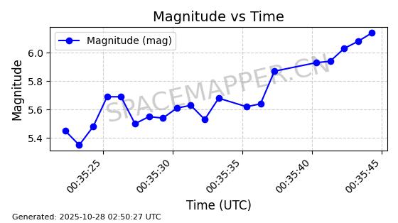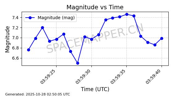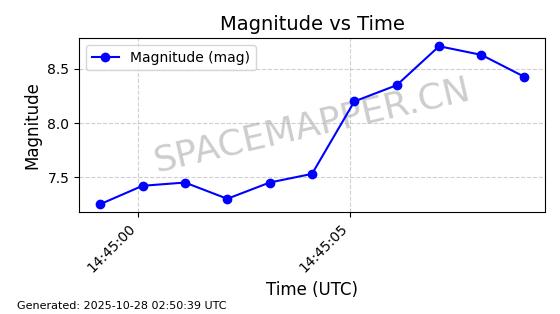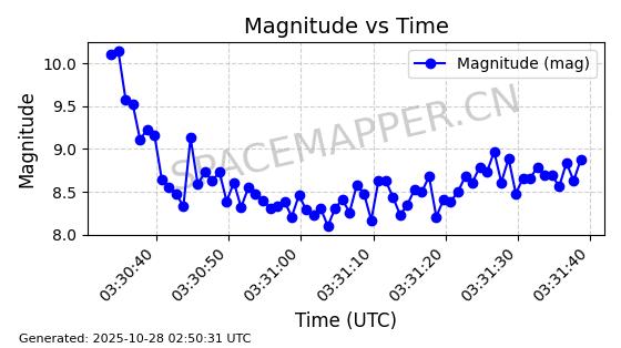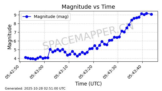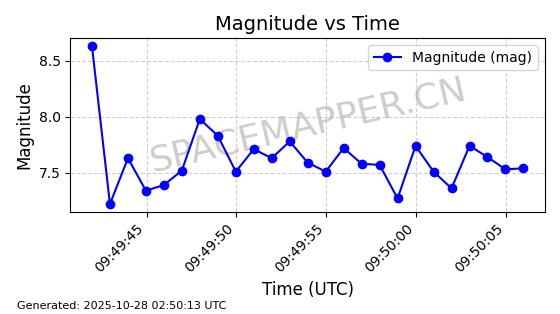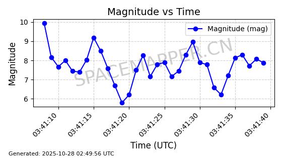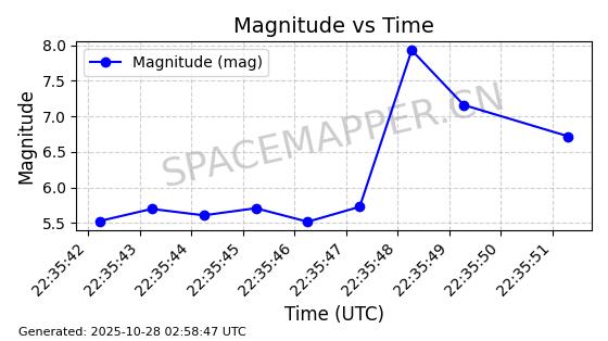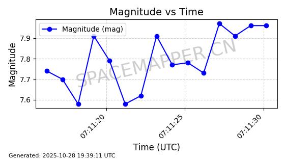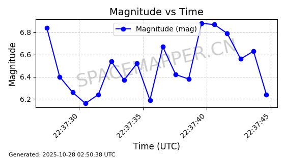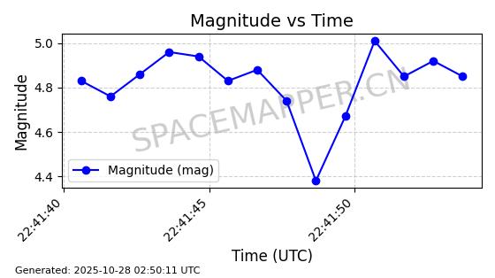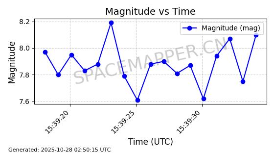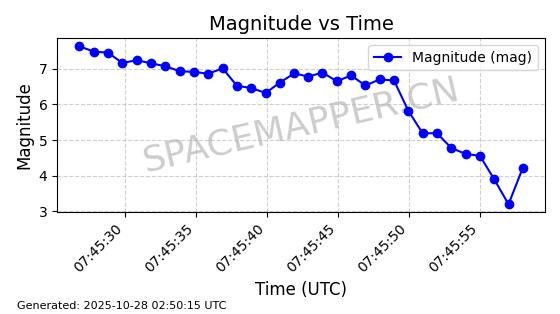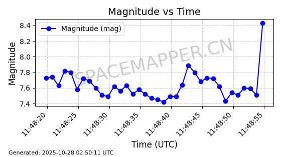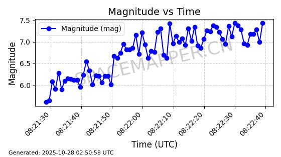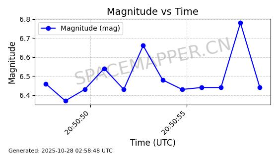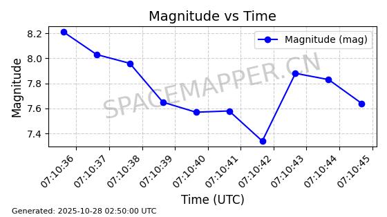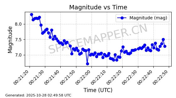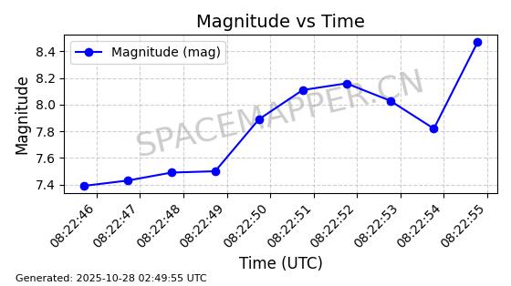 | IRIDIUM 82 | 25467 | 25467 | 1998-09-08 同日期轨道 1998-051A 同批次轨道 | 在轨 | 93分钟 | 86.3647 | 393.583 | 489.565 | 0.0070371 | 2025-10-27 21:30:00 | ||