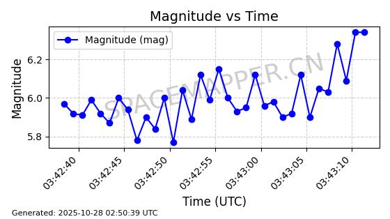 | IRIDIUM 26 | 24903 | 24903 | 1997-08-21 同日期轨道 1997-043A 同批次轨道 | 在轨 | 100分钟 | 86.3964 | 766.034 | 769.046 | 0.0002107 | 2025-10-27 19:40:55 | ||