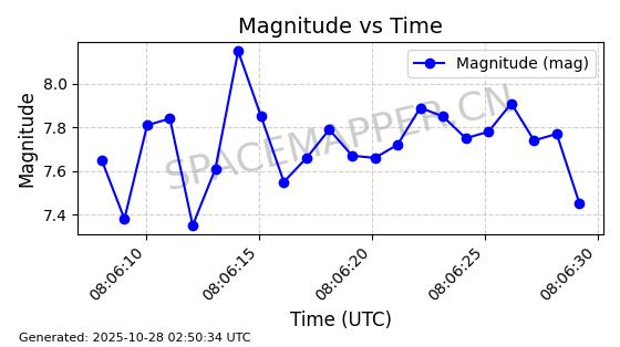| IRIDIUM 28 | 24948 | 24948 | 1997-09-14 同日期轨道 1997-051E 同批次轨道 | 在轨 | 100分钟 | 86.3923 | 765.201 | 768.347 | 0.0002201 | 2025-10-27 22:24:34 | ||