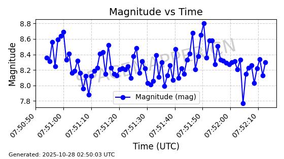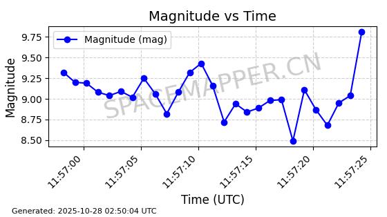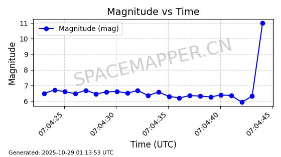 | DUMMY MASS 1 | 24925 | 24925 | 1997-09-01 同日期轨道 1997-048A 同批次轨道 | 在轨 | 97分钟 | 86.3323 | 601.198 | 612.704 | 0.0008235 | 2025-10-27 20:21:52 | ||