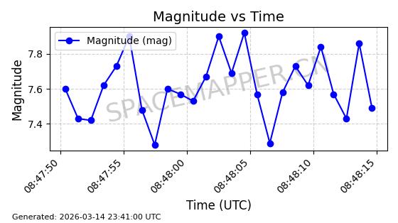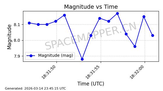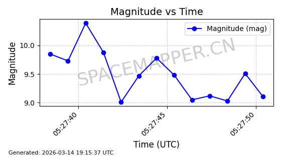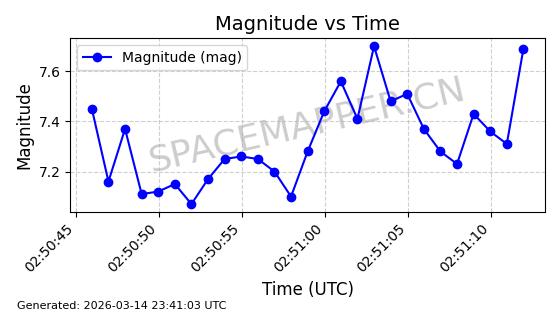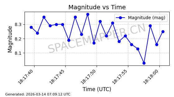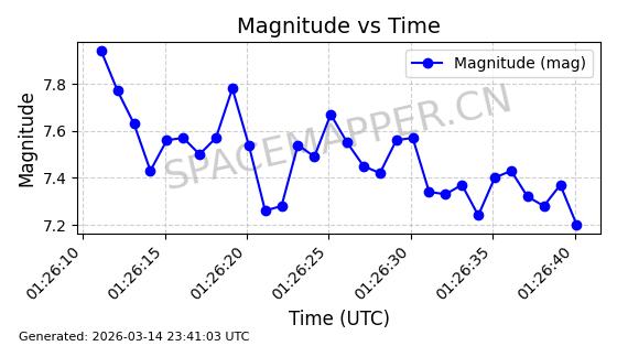| IRIDIUM 26 | 24903 | 24903 | 1997-08-21 同日期轨道 1997-043A 同批次轨道 | 在轨 | 100分钟 | 86.4017 | 765.652 | 768.41 | 0.0001929 | 2026-03-13 06:27:01 | ||