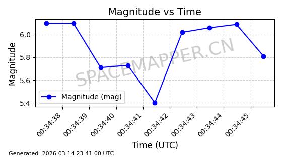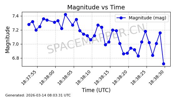 | 卫星名称 | AOE ID | NORAD ID | 发射日期 国际编号 | 在轨状态 | 轨道周期 | 轨道倾角 (度) | 近地点 (Km) | 远地点 (Km) | 偏心率 | 更新时间 (UTC) | 近期光变曲线 | 服务 |