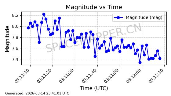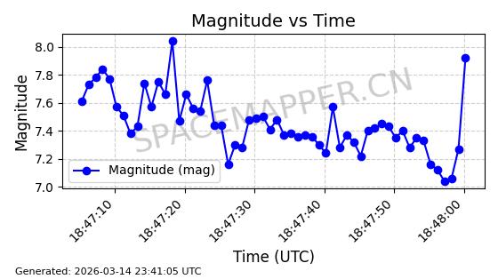| IRIDIUM 57 | 25273 | 25273 | 1998-03-30 同日期轨道 1998-019B 同批次轨道 | 在轨 | 100分钟 | 86.3974 | 769.869 | 772.765 | 0.0002024 | 2026-03-13 23:31:24 | ||