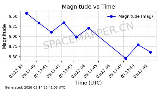 | IRIDIUM 145 | 43253 | 43253 | 2018-03-30 同日期轨道 2018-030E 同批次轨道 | 在轨 | 100分钟 | 86.4006 | 776.186 | 779.16 | 0.0002078 | 2026-03-13 23:00:15 | ||