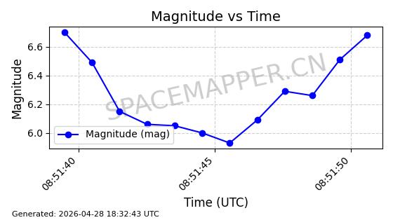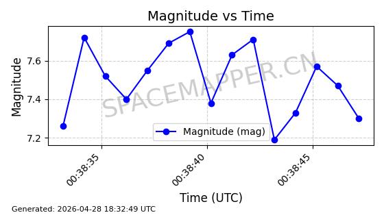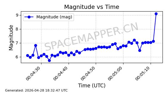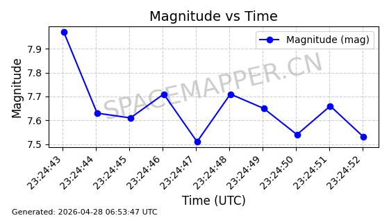 | IRIDIUM 26 | 24903 | 24903 | 1997-08-21 同日期轨道 1997-043A 同批次轨道 | 在轨 | 100分钟 | 86.3966 | 765.261 | 768.587 | 0.0002327 | 2026-04-28 03:26:18 | ||