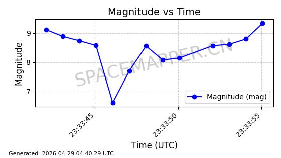 | DUMMY MASS 1 | 24925 | 24925 | 1997-09-01 同日期轨道 1997-048A 同批次轨道 | 在轨 | 97分钟 | 86.3367 | 600.131 | 612.523 | 0.0008870 | 2026-04-28 02:53:16 | ||
