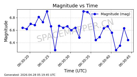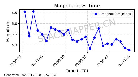 | IRIDIUM 57 | 25273 | 25273 | 1998-03-30 同日期轨道 1998-019B 同批次轨道 | 在轨 | 100分钟 | 86.4004 | 769.583 | 772.861 | 0.0002292 | 2026-04-28 04:46:51 | ||
