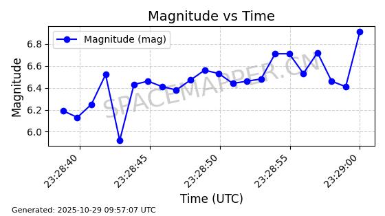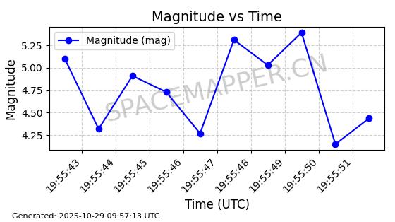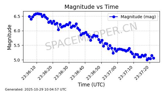 | IRIDIUM 178 | 56729 | 56729 | 2023-05-20 同日期轨道 2023-068V 同批次轨道 | 在轨 | 97分钟 | 86.6511 | 627.192 | 629.95 | 0.0001968 | 2025-10-27 21:32:10 | ||