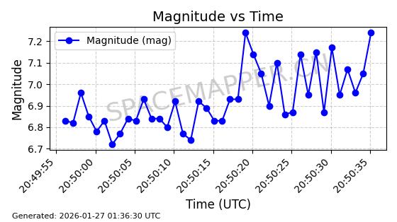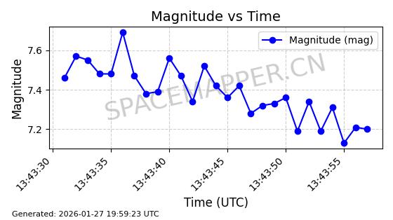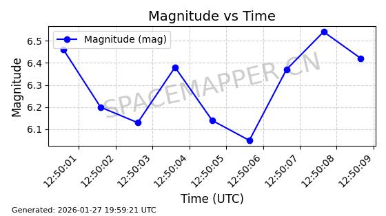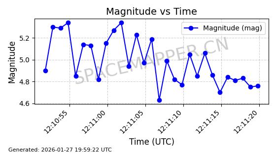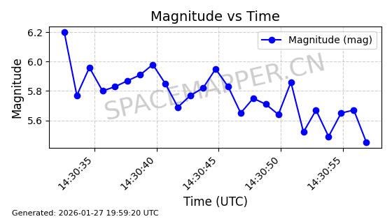 | IRIDIUM 178 | 56729 | 56729 | 2023-05-20 同日期轨道 2023-068V 同批次轨道 | 在轨 | 97分钟 | 86.6507 | 627.037 | 630.055 | 0.0002153 | 2026-01-27 05:27:01 | ||