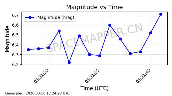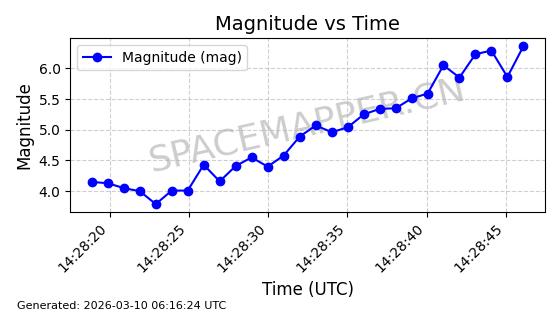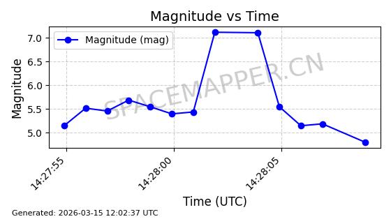 | 卫星名称 | AOE ID | NORAD ID | 发射日期 国际编号 | 在轨状态 | 轨道周期 | 轨道倾角 (度) | 近地点 (Km) | 远地点 (Km) | 偏心率 | 更新时间 (UTC) | 近期光变曲线 | 服务 |