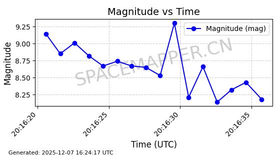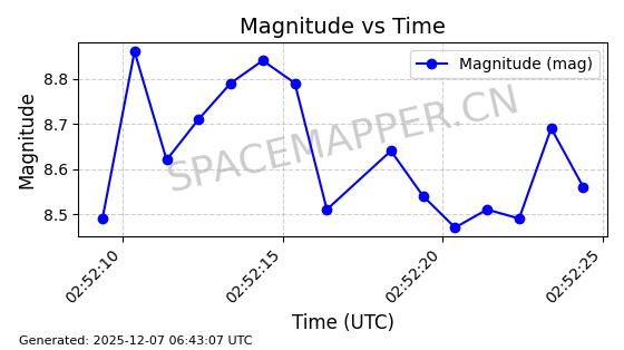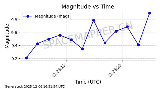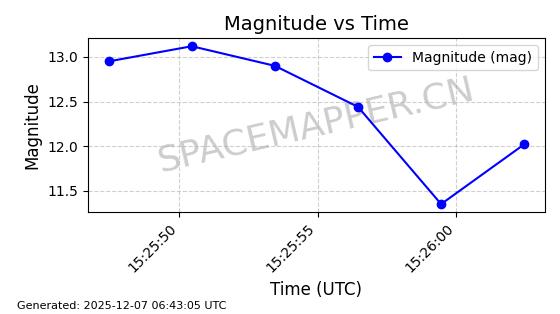 | JILIN-01 GAOFEN 3B | 46454 | 46454 | 2020-09-15 同日期轨道 2020-065A 同批次轨道 | 在轨 | 92分钟 | 97.2546 | 385.316 | 391.448 | 0.0004530 | 2025-12-05 21:48:44 | ||