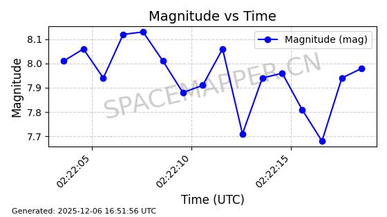 | JILIN-01 GAOFEN 3D 6 | 52391 | 52391 | 2022-04-30 同日期轨道 2022-046D 同批次轨道 | 在轨 | 93分钟 | 97.5069 | 397.348 | 397.948 | 0.0000442 | 2025-12-05 22:50:25 | ![]() | |