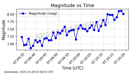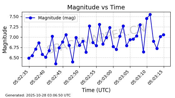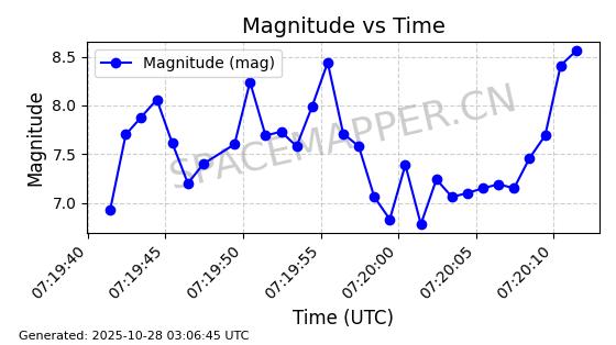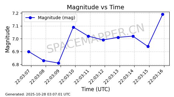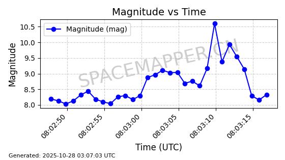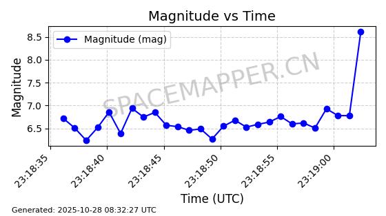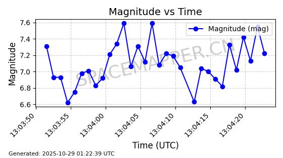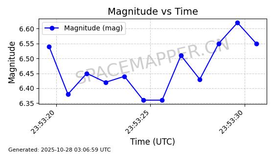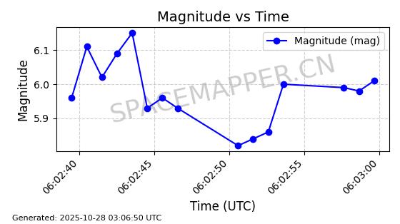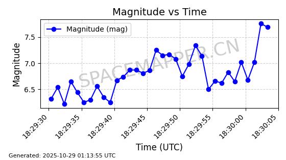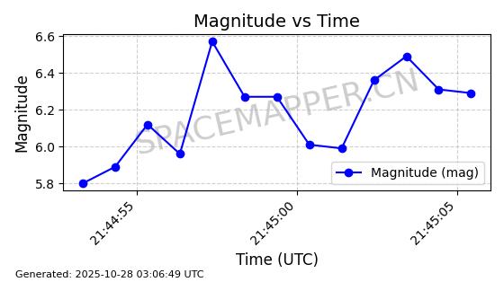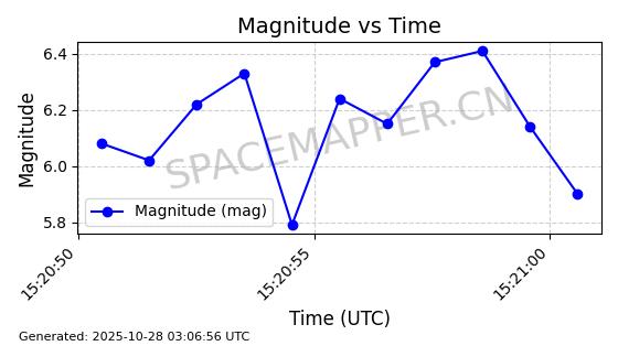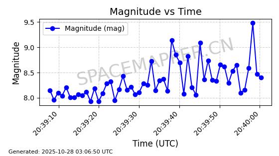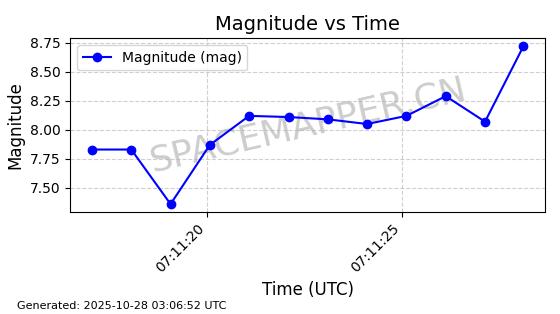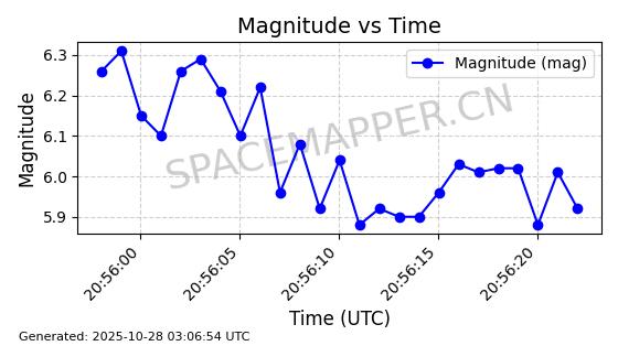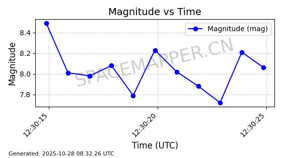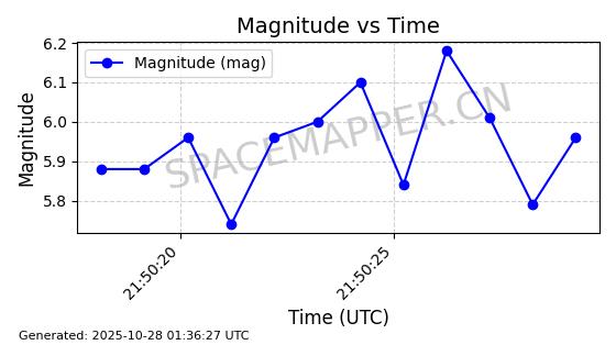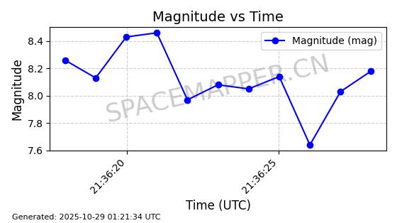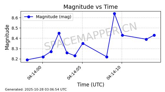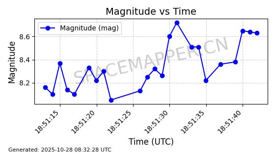 | METEOR 1-13 | 6256 | 6256 | 1972-10-26 同日期轨道 1972-085A 同批次轨道 | 在轨 | 102分钟 | 81.2737 | 842.247 | 880.493 | 0.0026414 | 2025-10-27 21:54:36 | ||