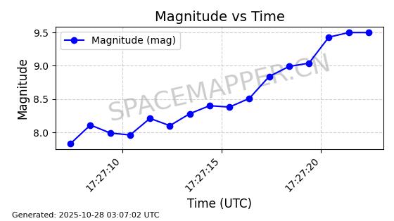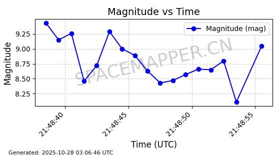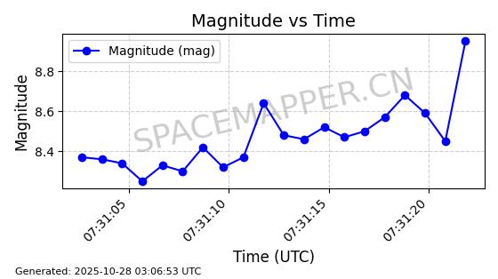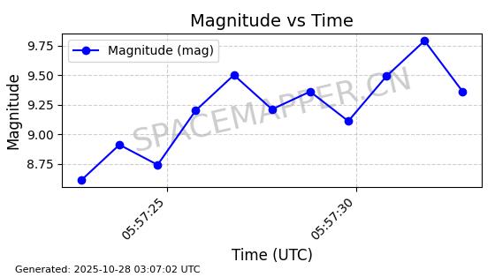 | METEOR 2-10 | 14452 | 14452 | 1983-10-28 同日期轨道 1983-109A 同批次轨道 | 在轨 | 101分钟 | 81.1620 | 736.356 | 865.866 | 0.0090197 | 2025-10-27 21:29:27 | ||