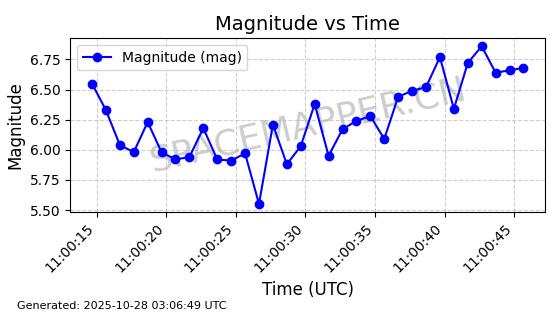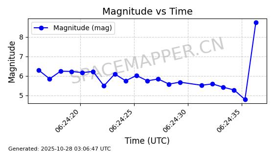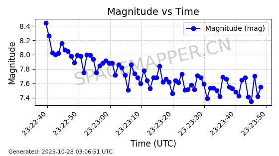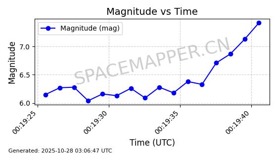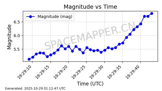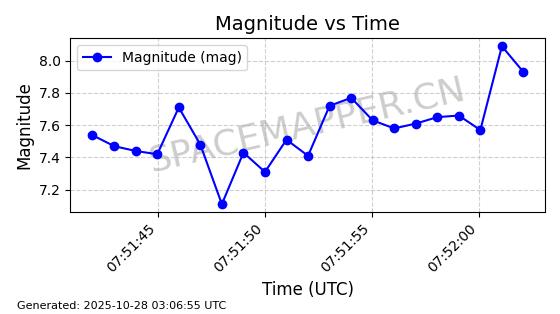 | METEOR M2-2 | 44387 | 44387 | 2019-07-05 同日期轨道 2019-038A 同批次轨道 | 在轨 | 101分钟 | 98.8927 | 810.116 | 811.84 | 0.0001198 | 2025-10-28 00:05:20 | ||
