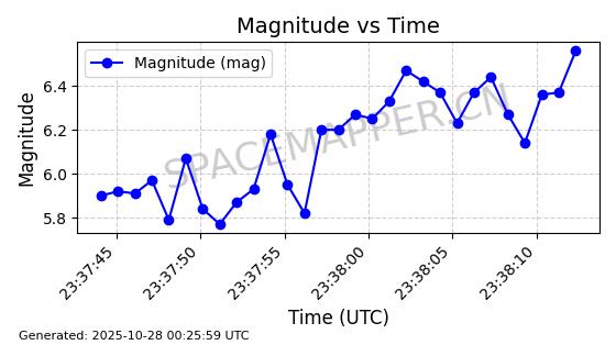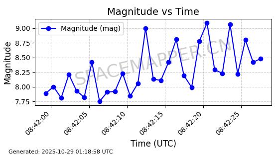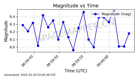 | METEOR 1-26 | 9481 | 9481 | 1976-10-15 同日期轨道 1976-102A 同批次轨道 | 在轨 | 102分钟 | 81.2146 | 841.693 | 874.989 | 0.0023005 | 2025-10-27 21:51:24 | ||