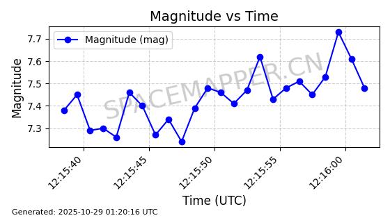 | METEOR 1-20 | 7574 | 7574 | 1974-12-17 同日期轨道 1974-099A 同批次轨道 | 在轨 | 102分钟 | 81.2359 | 841.441 | 863.587 | 0.0015313 | 2025-10-27 22:27:21 | ||