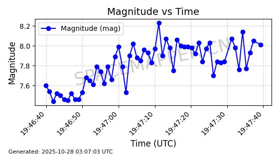 | METEOR 1-19 | 7490 | 7490 | 1974-10-28 同日期轨道 1974-083A 同批次轨道 | 在轨 | 102分钟 | 81.1911 | 835.615 | 879.605 | 0.0030397 | 2025-10-27 21:19:30 | ||