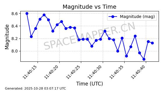 | METEOR 2-8 | 13113 | 13113 | 1982-03-25 同日期轨道 1982-025A 同批次轨道 | 在轨 | 104分钟 | 82.5356 | 930.802 | 957.556 | 0.0018268 | 2025-10-27 22:29:21 | ||