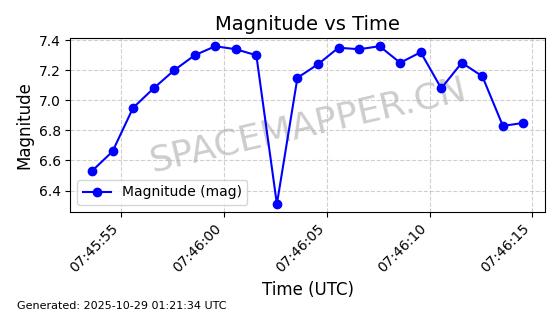 | METEOR 1-21 | 7714 | 7714 | 1975-04-01 同日期轨道 1975-023A 同批次轨道 | 在轨 | 102分钟 | 81.1934 | 844.556 | 884.912 | 0.0027859 | 2025-10-27 22:43:02 | ||