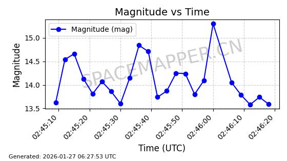 | METEOSAT 12 (MTG I1) | 54743 | 54743 | 2022-12-13 同日期轨道 2022-170C 同批次轨道 | 在轨 | 1436分钟 | 0.6991 | 35777.864 | 35797.506 | 0.0002329 | 2026-01-27 05:06:10 |
