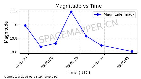 | MOLNIYA 2-9 | 7276 | 7276 | 1974-04-26 同日期轨道 1974-026A 同批次轨道 | 在轨 | 588分钟 | 64.4039 | 1362.795 | 32354.539 | 0.6668676 | 2026-01-26 01:22:01 | ||