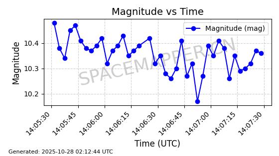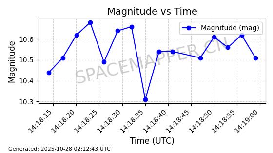 | O3B FM7 | 40080 | 40080 | 2014-07-10 同日期轨道 2014-038B 同批次轨道 | 在轨 | 288分钟 | 0.0615 | 8059.803 | 8071.983 | 0.0004216 | 2025-10-23 18:45:01 | ||