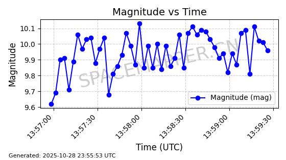 | O3B FM4 | 39189 | 39189 | 2013-06-25 同日期轨道 2013-031B 同批次轨道 | 在轨 | 288分钟 | 0.0631 | 8059.916 | 8071.888 | 0.0004144 | 2025-10-27 16:28:29 | ||