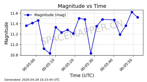 | 卫星名称 | AOE ID | NORAD ID | 发射日期 国际编号 | 在轨状态 | 轨道周期 | 轨道倾角 (度) | 近地点 (Km) | 远地点 (Km) | 偏心率 | 更新时间 (UTC) | 近期光变曲线 | 服务 |