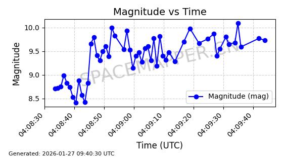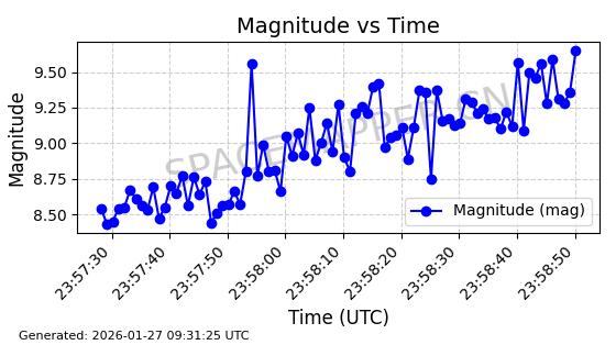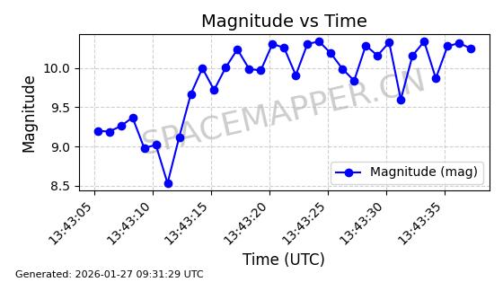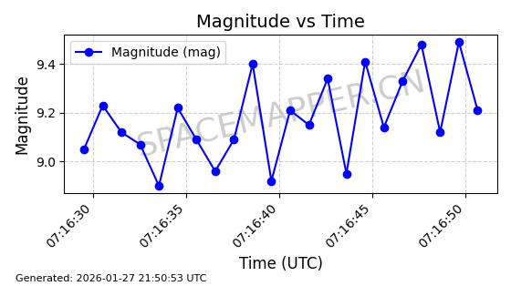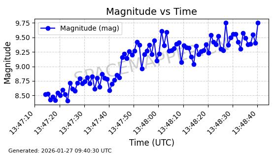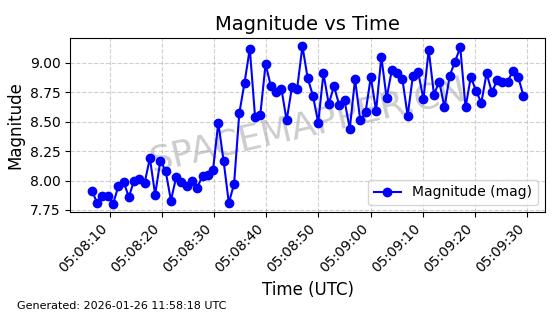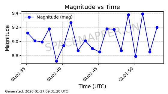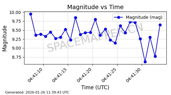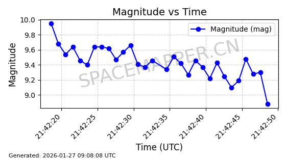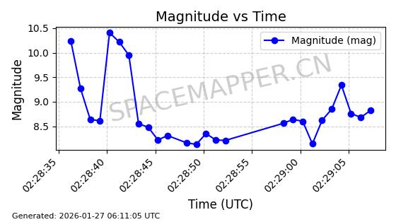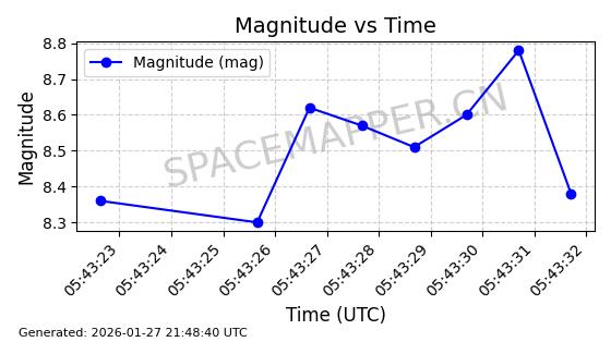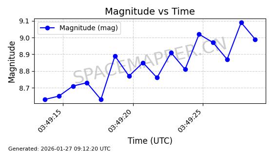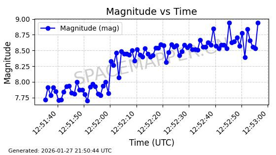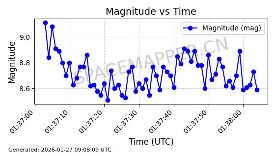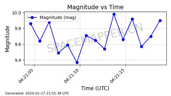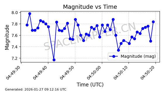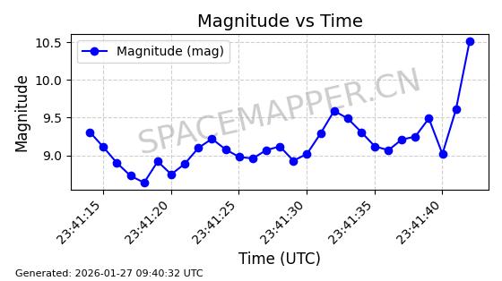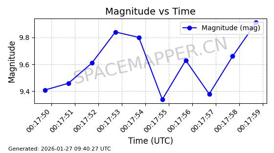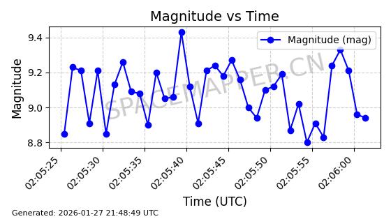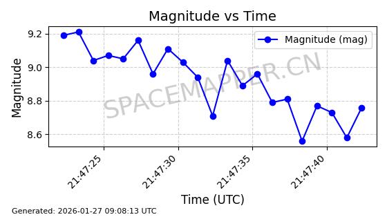| ONEWEB-0228 | 48780 | 48780 | 2021-05-28 同日期轨道 2021-045P 同批次轨道 | 在轨 | 109分钟 | 87.9001 | 1200.667 | 1202.883 | 0.0001461 | 2026-01-27 05:41:15 | ||