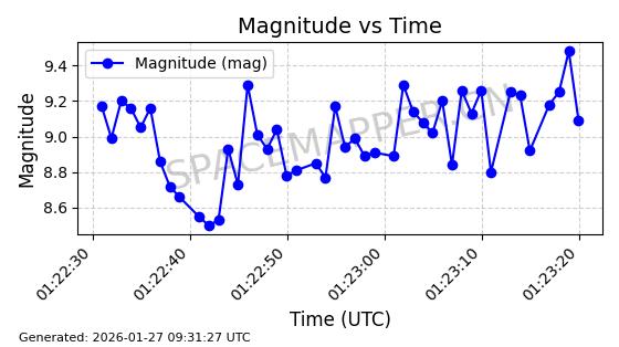 | ONEWEB-0235 | 48771 | 48771 | 2021-05-28 同日期轨道 2021-045E 同批次轨道 | 在轨 | 109分钟 | 87.9008 | 1200.908 | 1202.64 | 0.0001142 | 2026-01-27 06:28:59 | ||
