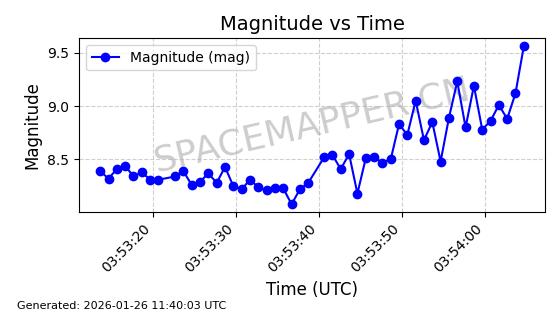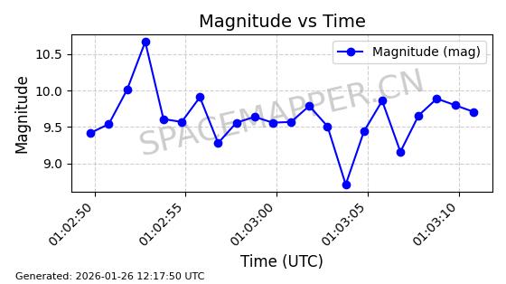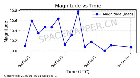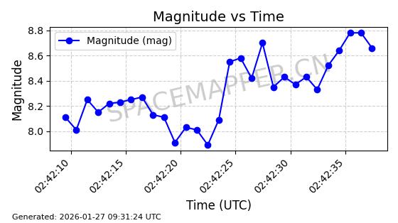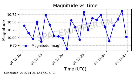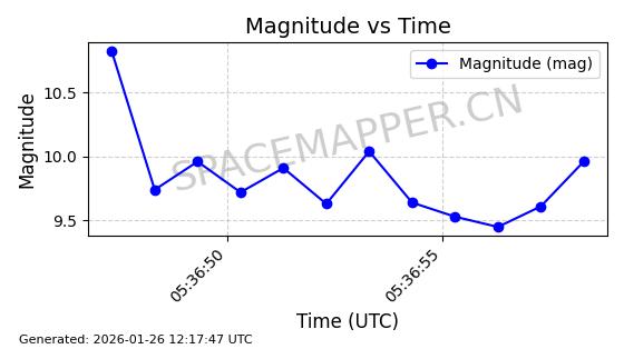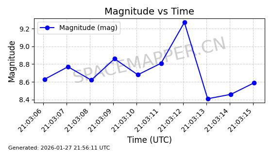 | ONEWEB-0162 | 48056 | 48056 | 2021-03-25 同日期轨道 2021-025Q 同批次轨道 | 在轨 | 110分钟 | 87.9026 | 1208.289 | 1211.253 | 0.0001952 | 2026-01-27 06:39:36 | ||