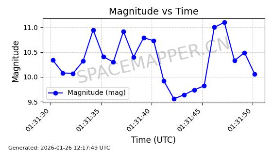 | ONEWEB-0232 | 48781 | 48781 | 2021-05-28 同日期轨道 2021-045Q 同批次轨道 | 在轨 | 109分钟 | 87.9013 | 1200.611 | 1202.935 | 0.0001532 | 2026-01-27 03:15:02 | ||