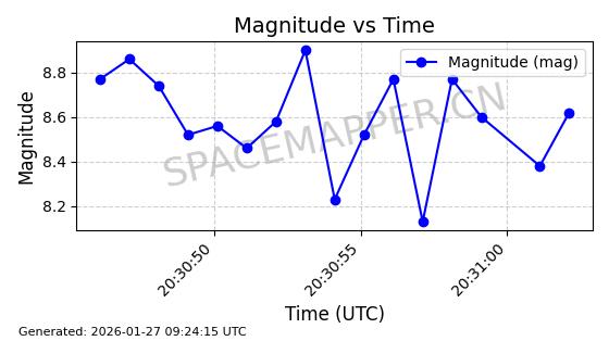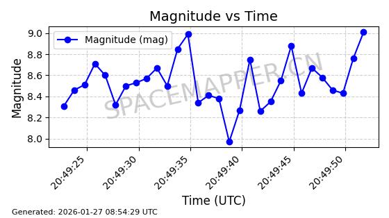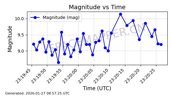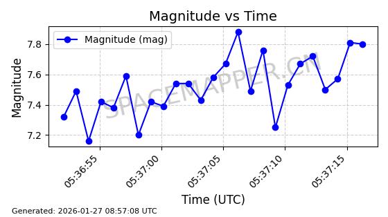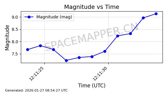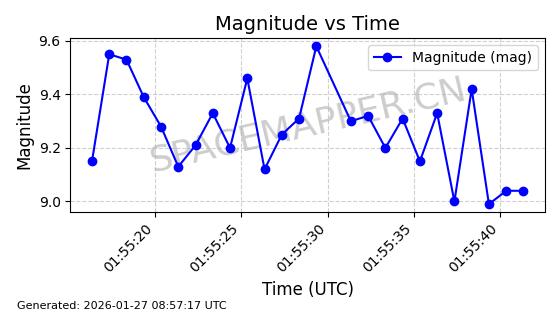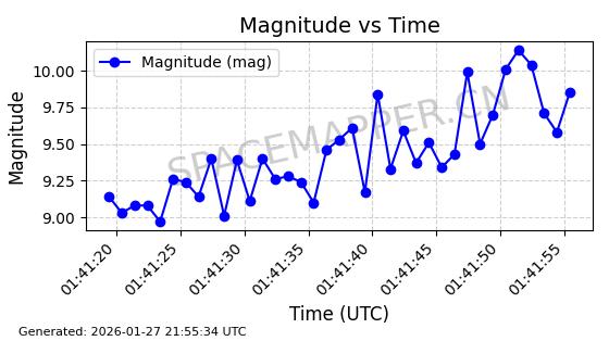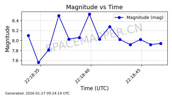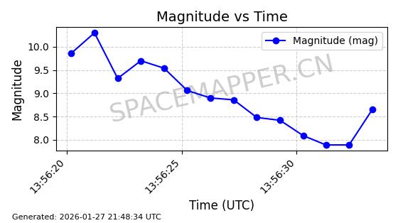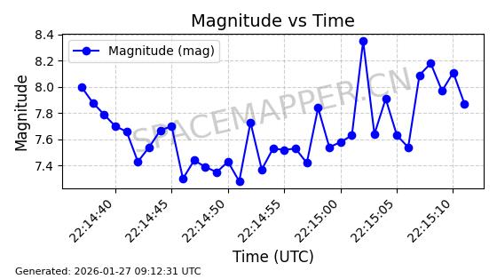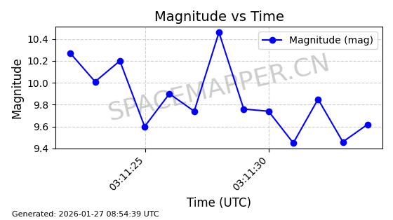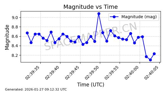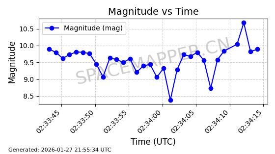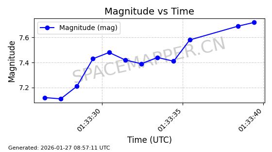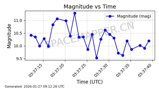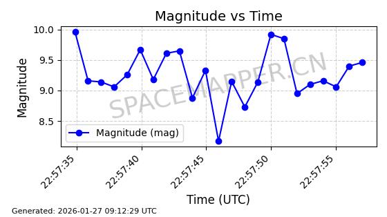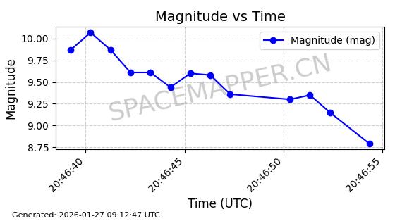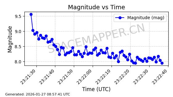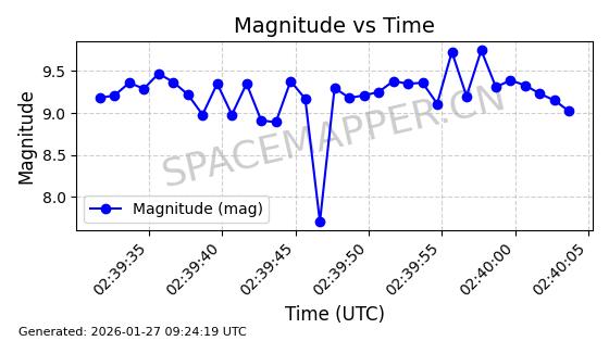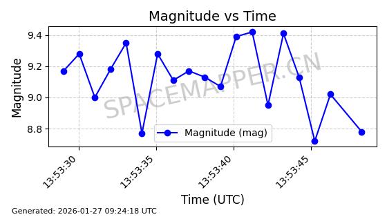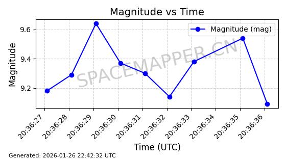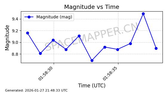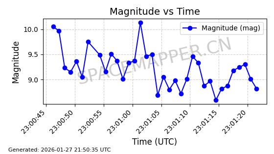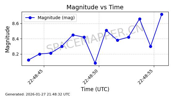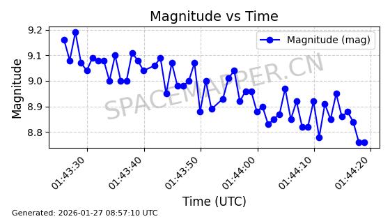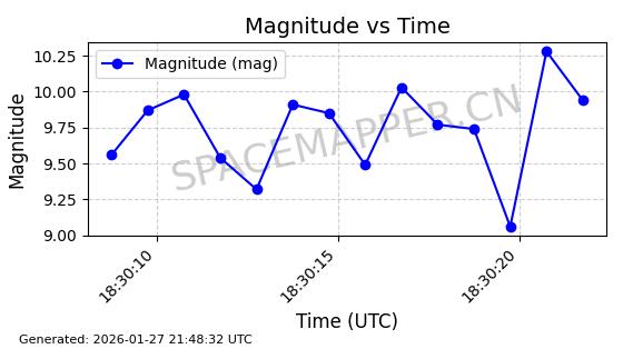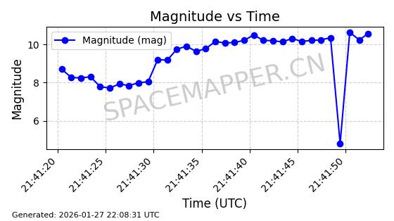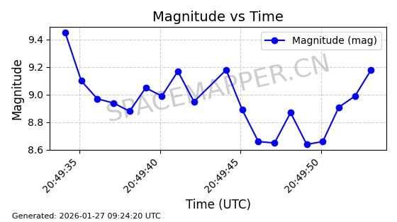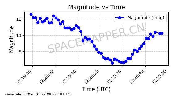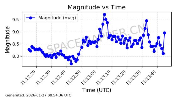 | ONEWEB-0311 | 49097 | 49097 | 2021-08-21 同日期轨道 2021-075Y 同批次轨道 | 在轨 | 109分钟 | 87.9093 | 1192.066 | 1195.36 | 0.0002174 | 2026-01-27 00:09:12 | ||