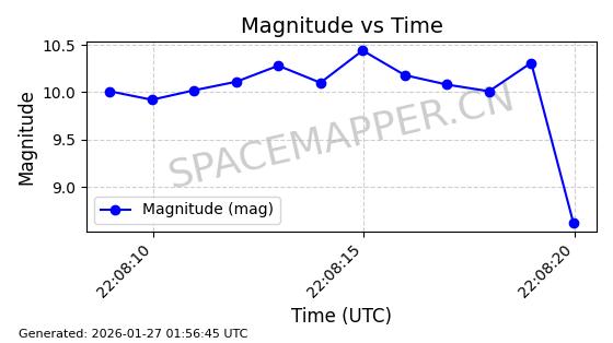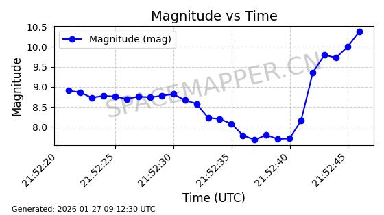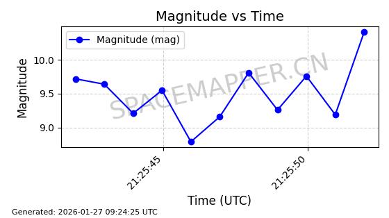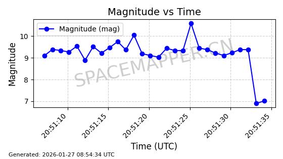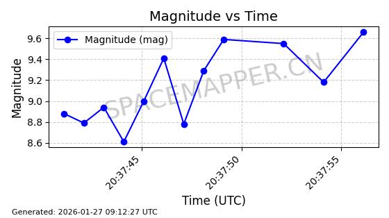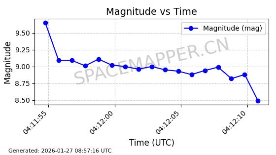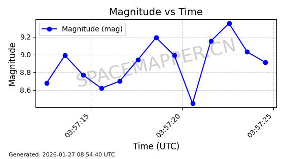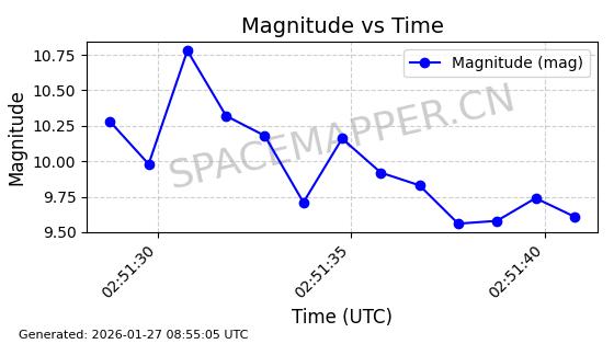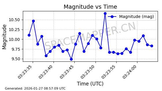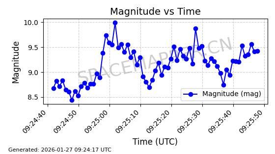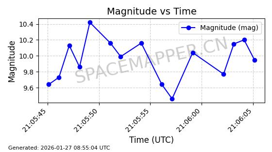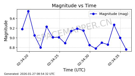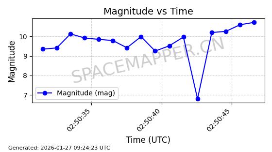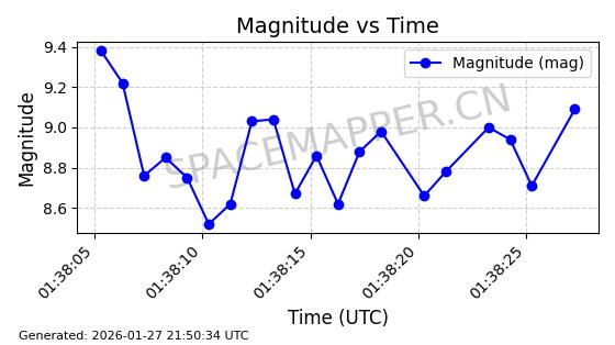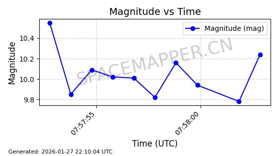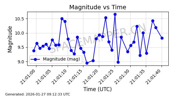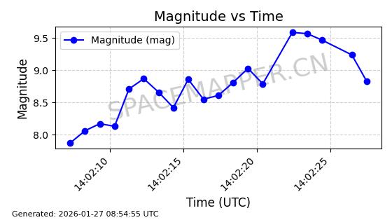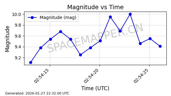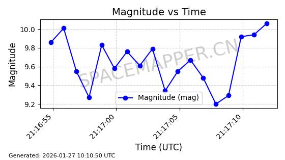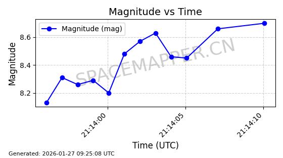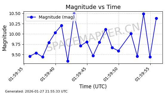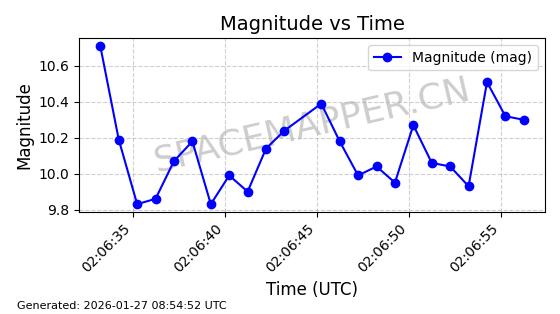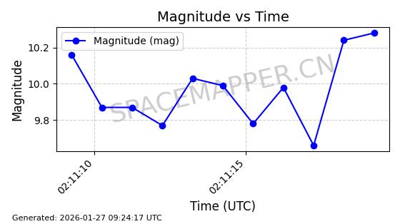 | ONEWEB-0254 | 48972 | 48972 | 2021-07-01 同日期轨道 2021-060F 同批次轨道 | 在轨 | 109分钟 | 87.9016 | 1196.863 | 1198.657 | 0.0001184 | 2026-01-27 02:35:15 | ||